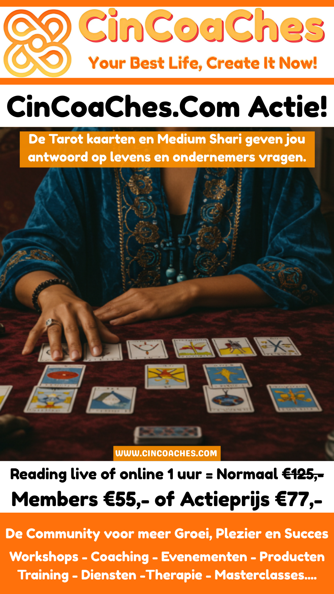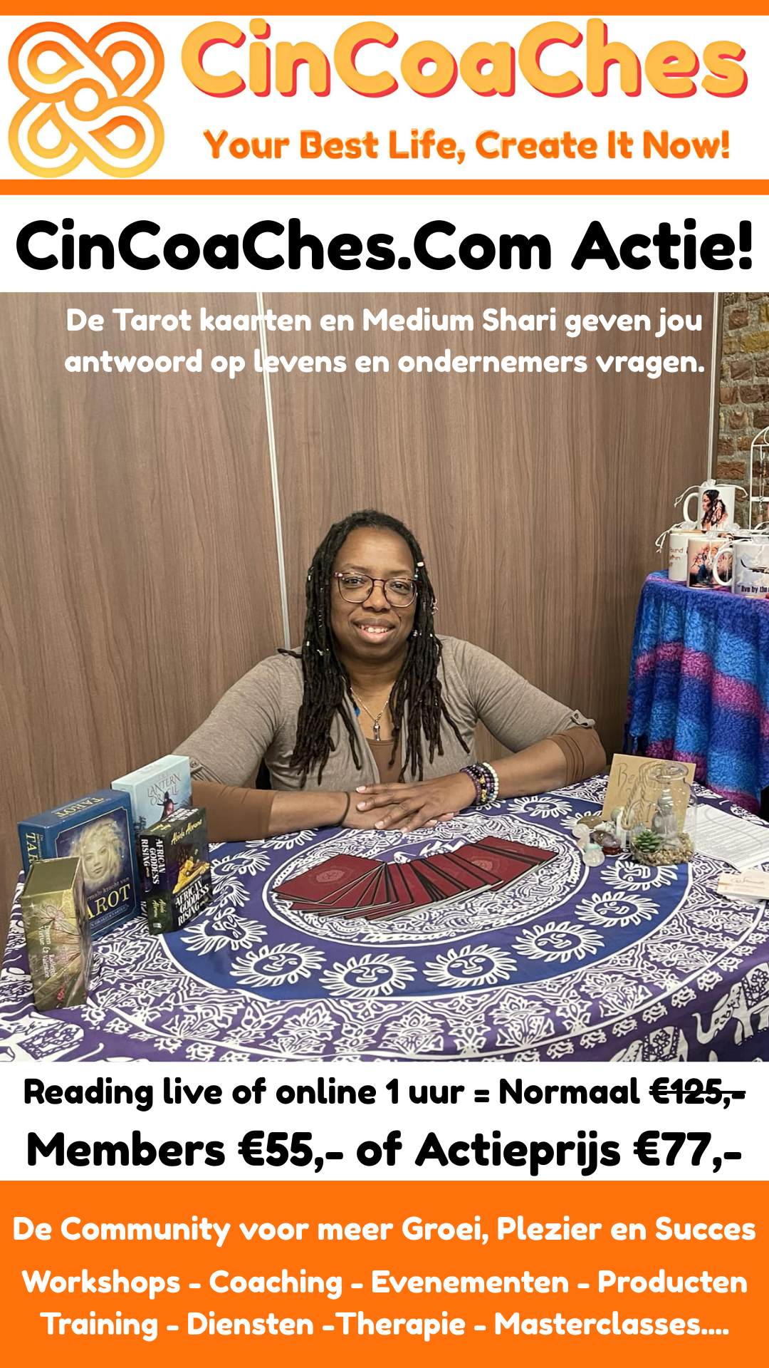 Alle members van CinCoaChes geef ik op onderstaande producten en diensten 10%-30% korting of extra voordeel. Meld je HIER aan om member te worden. Ga voor info naar: https://www.shariselle.com of whatsapp mij via: 0622854433 of 0645676076